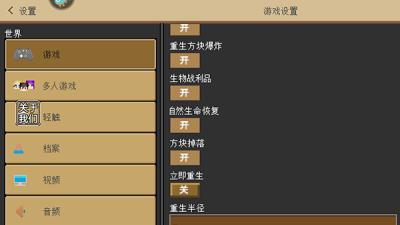 可在设置界面对世界环境进行调整,根据需求优化游戏体验,例如难度与环境参数等。