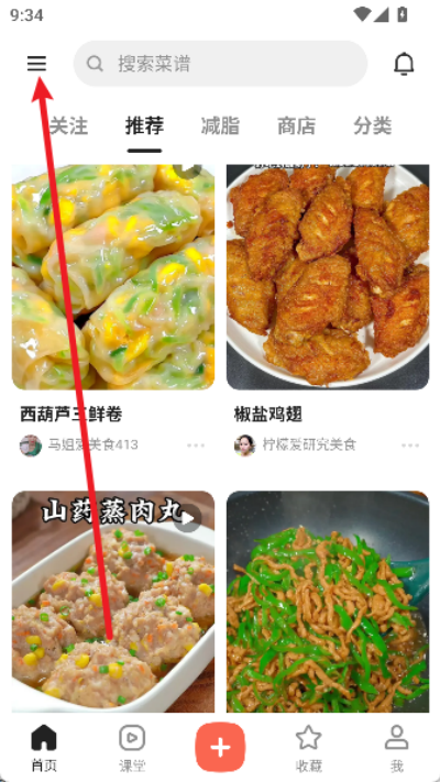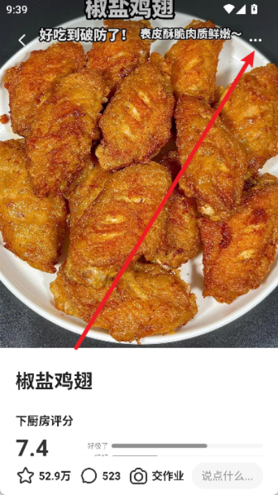 2、在菜谱页面点击右上角三个点图标进入更多操作选项。