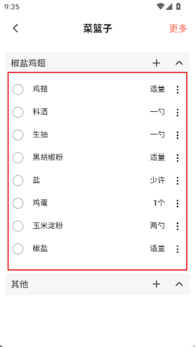 6、页面中即可清晰查看已加入菜篮子的全部食材信息。