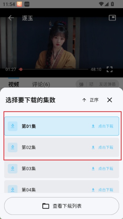 3、在弹出的集数选择界面中勾选需要保存的剧集内容,确认后执行下载操作。