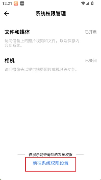 4、点击页面下方蓝色字体“前往系统权限设置”,跳转至系统设置界面后即可根据需求对相关权限进行修改与调整。