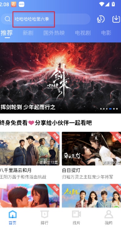 2、在搜索框中输入目标影视名称后,系统会自动展示相关联想结果供选择参考。