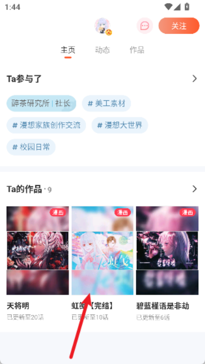 4、在个人主页中浏览漫画作品列表并点击想看的漫画作品进入详情页。