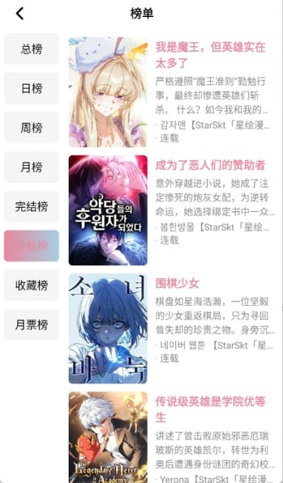 2、点击进入“连载榜”板块,可以查看当前热度较高的漫画作品榜单,帮助更高效地发现优质与热门内容。
