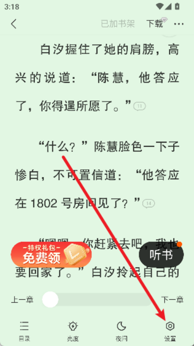 2、在阅读界面点击设置按钮进入阅读相关功能调整页面。