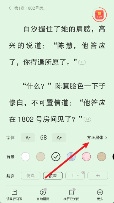 1、进入应用后选择任意小说进入阅读页面查看正文内容界面。