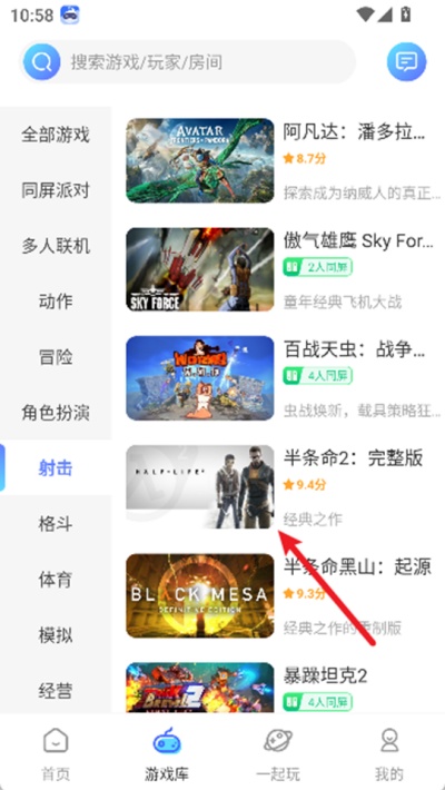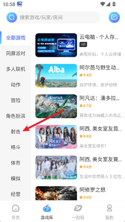 2、进入游戏库页面之后,在分类栏目中找到“射击”类型游戏分类,并点击该分类查看相关游戏内容。