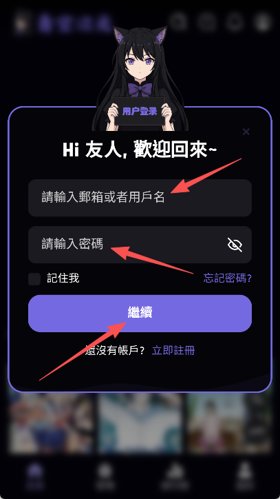 1、点击【我的】进入个人中心页面,弹出登录窗口后填写账号与密码完成登录操作。