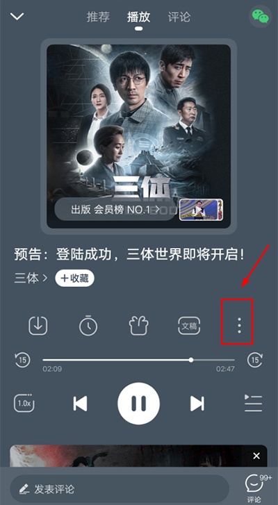 2、进入播放页面后,在播放界面中点击红框标识的功能图标进入设置菜单选项。