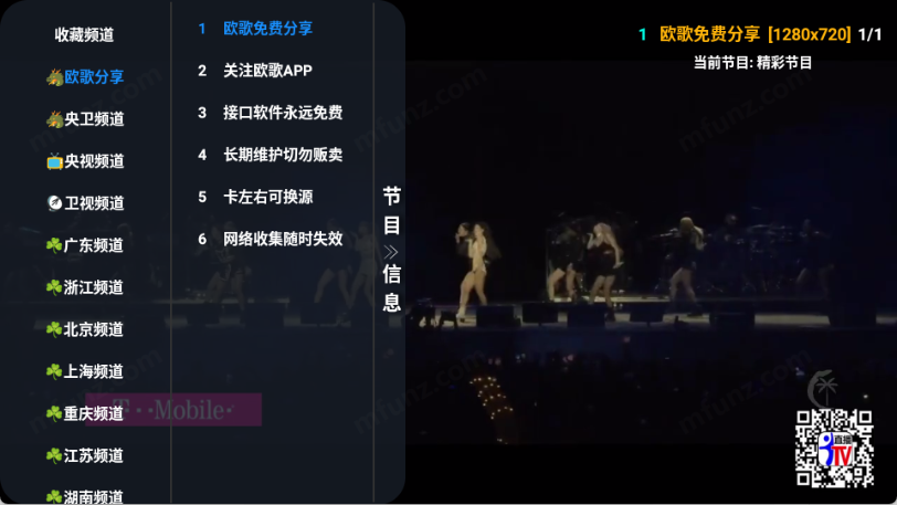 3、首页提供直播功能入口,点击播放画面即可唤出频道菜单并进行频道切换。