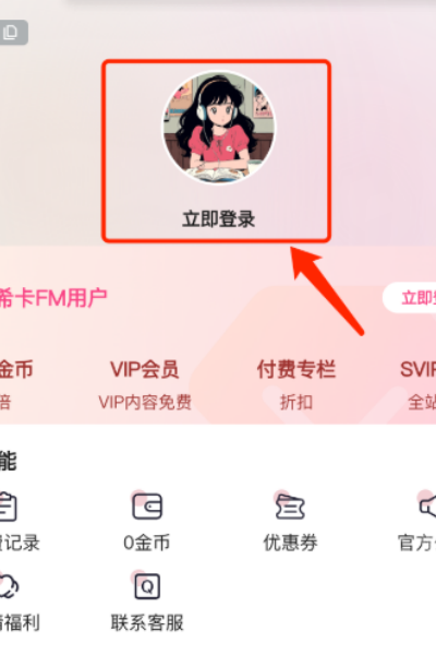 2、点击页面中的头像区域选择立即登录选项。