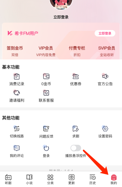 1、进入希卡FM软件首页后点击右下角「我的」进入个人中心页面。