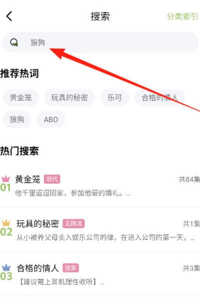 3、在搜索框中输入关键词,系统快速匹配对应广播剧内容,精准定位目标资源,无需逐页翻找节省查找时间。