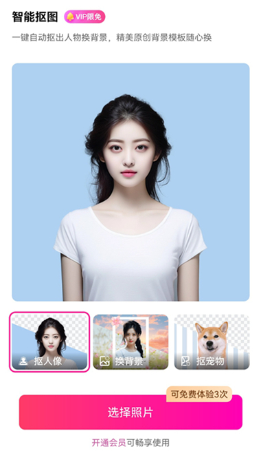 2、普通用户拥有三次免费体验次数,点击【选择照片】导入图片。