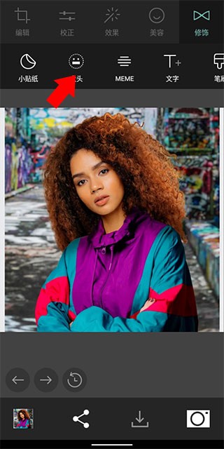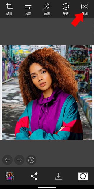 2、选取需要处理的照片后进入编辑界面,在右上角位置点击修饰功能选项。