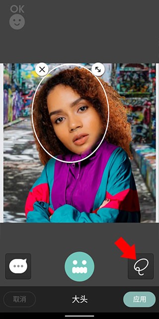 4、系统会自动识别面部区域,若识别不完整,可使用右下角磁力套索工具进行手动圈选补充。