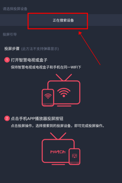 4、在播放页面右上角点击投屏按钮,进入设备连接界面,准备进行多屏播放操作。