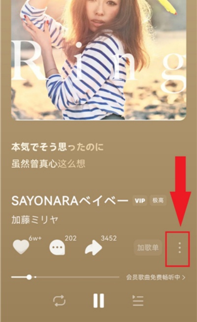 1、进入歌曲播放页面后点击右下角的三点图标,打开更多功能操作菜单界面。