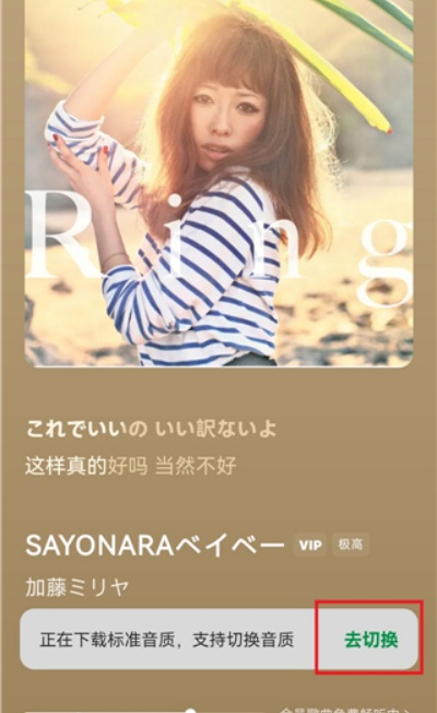 3、点击下载后系统默认选择标准音质,可点击“去切换”进入音质选择页面。