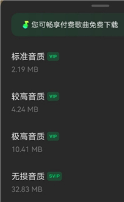 4、在音质选择页面中选择所需音质类型后点击确认即可完成歌曲下载操作。