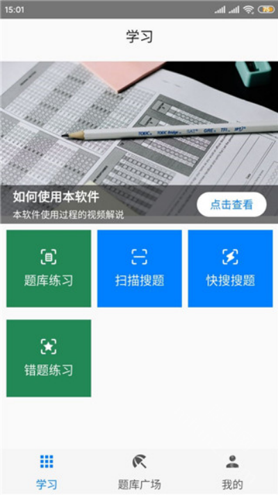1、下载并完成快搜搜题安装后进入应用,点击学习栏目即可查看各类功能入口与学习相关模块,整体结构清晰便于快速上手使用。