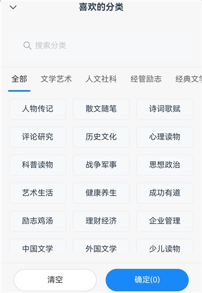 3、点击下方“点击添加”可进一步选择不同书籍分类,支持多项内容同时勾选设置。