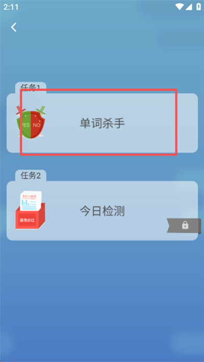 4、在关卡中选择“单词杀手”任务进入词汇学习界面,通过任务形式进行单词记忆与理解训练。