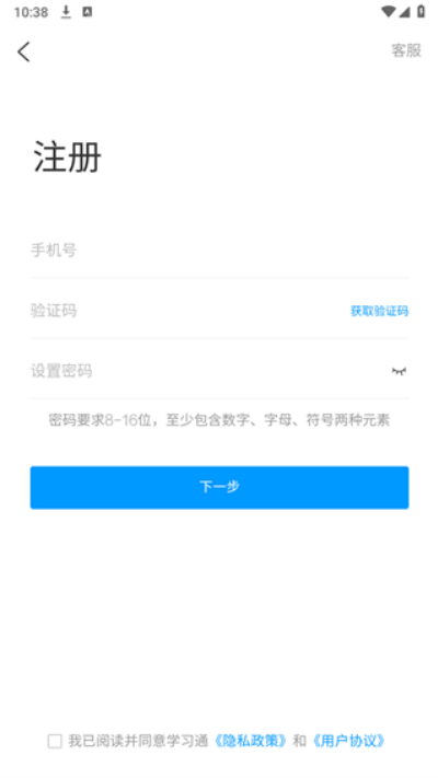 3、在注册页面输入手机号及相关基础信息,完成身份信息填写用于账号绑定与系统识别,点击下一步即可。