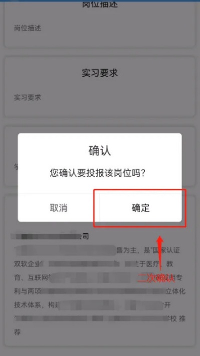 3、当本校推荐人数达到20人后,点击“参加报名”按钮进入报名确认流程,核对岗位信息后进行正式报名操作。
