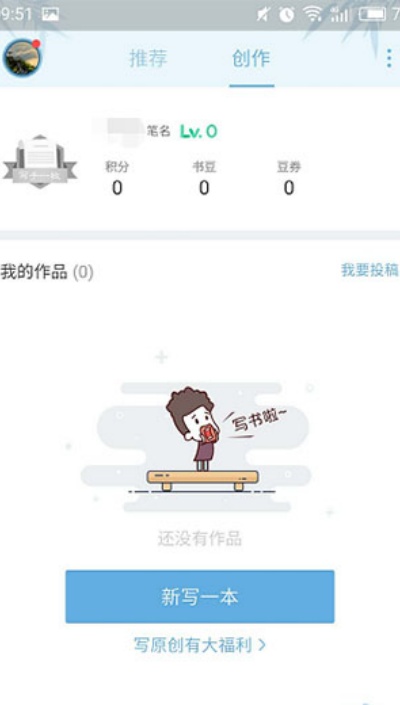 4、在原创页面中选择“创作”功能进入写作界面。