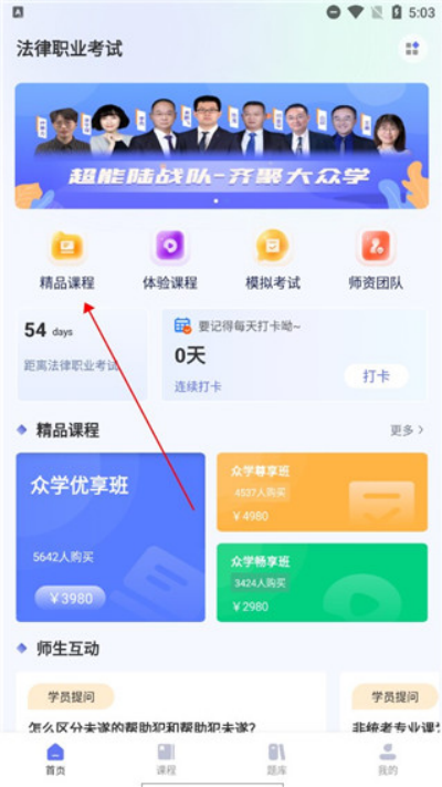 1、下载并打开众学无忧后进入主界面,根据学习需求选择对应课程分类入口进行浏览操作。