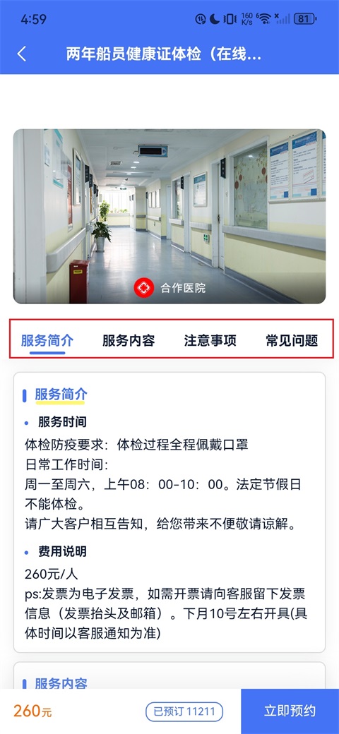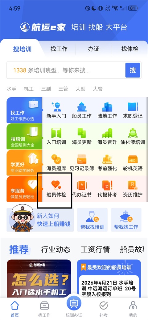 1、进入首页“享服务”板块,点击“船员体检”入口。