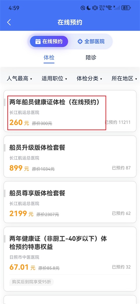 2、【职业服务全面】支持证书办理、体检预约与成绩查询等功能,实现船员职业发展全流程服务覆盖。