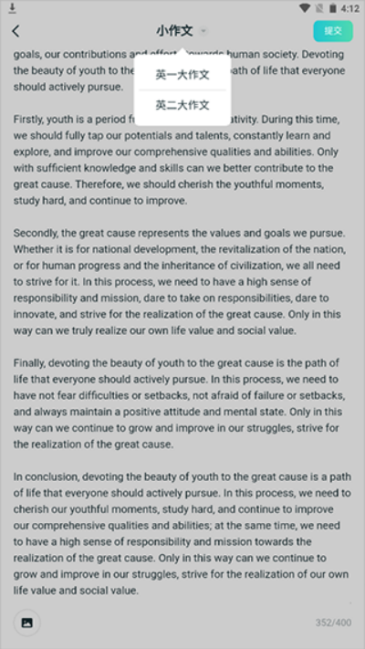 4、提交作文时需注意仅支持英文内容输入,若包含非英文字符可能导致无法正常提交。