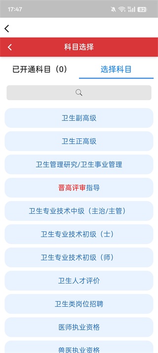 3、进入“职称题库”模块后选择对应考试类型进行刷题训练,通过练习巩固医学知识点并提升备考能力。