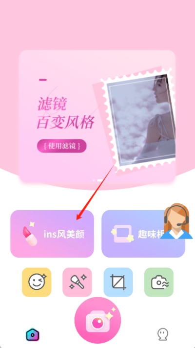 4、在软件首页可以看到多种拍摄模式入口,根据不同拍照需求自由切换,例如带有氛围感的ins风效果或美颜拍摄等。选择合适的模式后再进行拍照,可以让照片呈现出不同风格与视觉效果。
