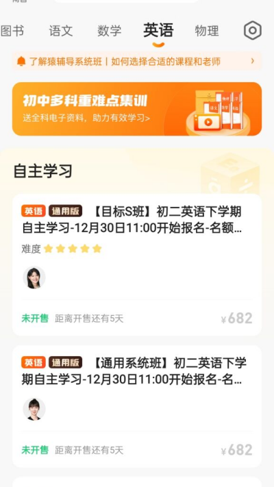 1、进入猿辅导后选择所在区域与年级信息,完成基础学习阶段匹配设置进入主界面。