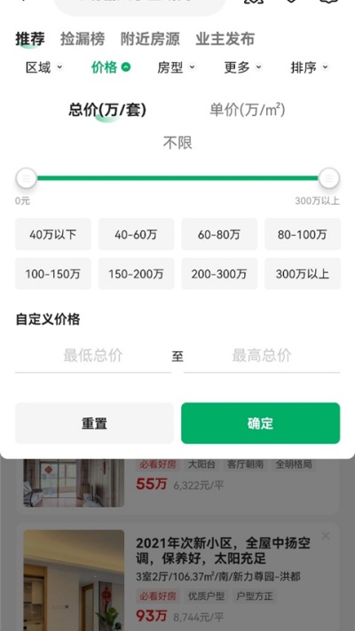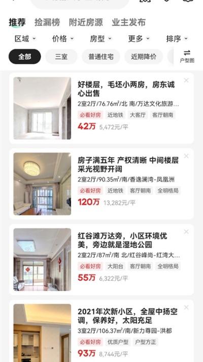 3、可根据需求对区域、价格、户型等条件进行多维筛选,快速定位合适房源。