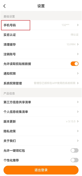 2、在基础设置中选择【手机号码】选项进入管理页面。