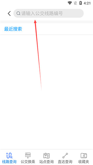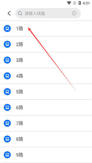 2、进入后在搜索框中输入你要查询的公交线路编号,例如1路、2路等,方便系统精准匹配线路。
