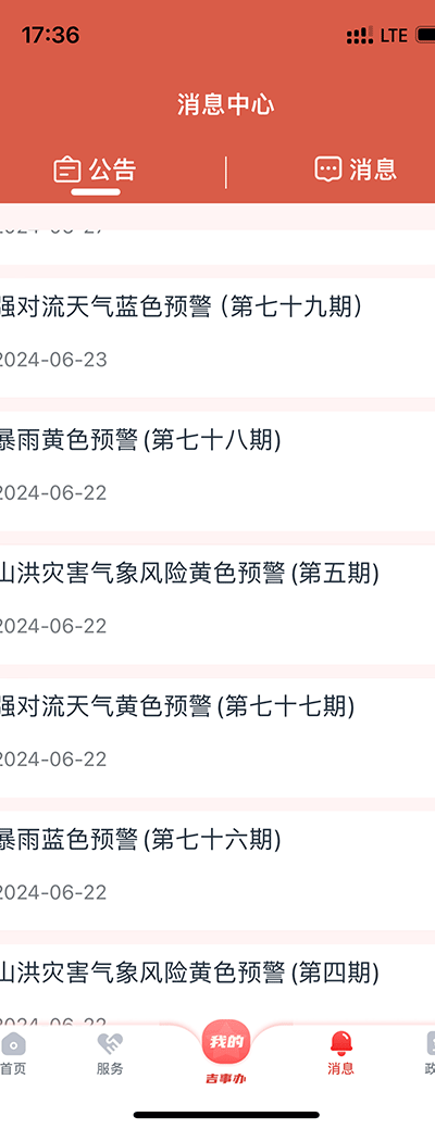 3、进入消息页面后,系统会自动推送天气预报及相关提醒信息,方便用户及时掌握生活动态。