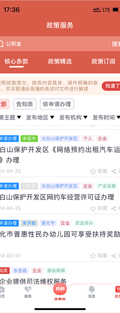 4、政策页面会实时更新最新政策新闻内容,并支持订阅功能,让用户不错过重要政务信息。
