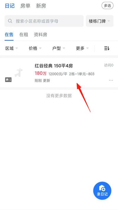 1、打开“看房日记app”,在首页点击“日记-录日记”按钮。