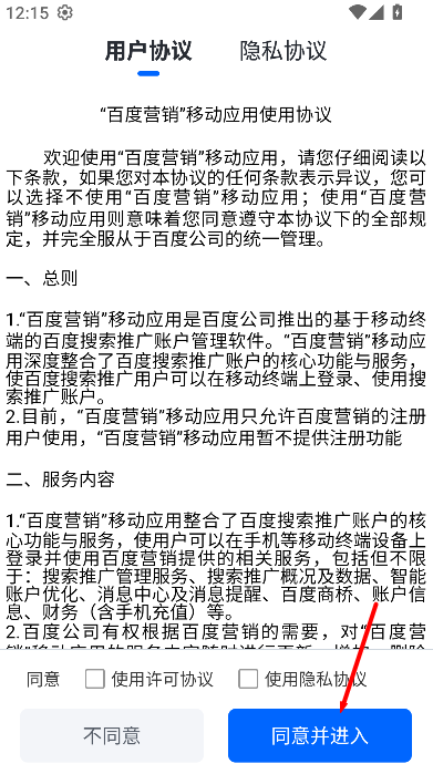 仔细阅读相关内容后,点击“同意并进入”,即可进入应用首页或登录界面。