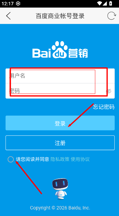在登录页面中,输入已注册的账号(用户名或手机号)以及对应的登录密码。