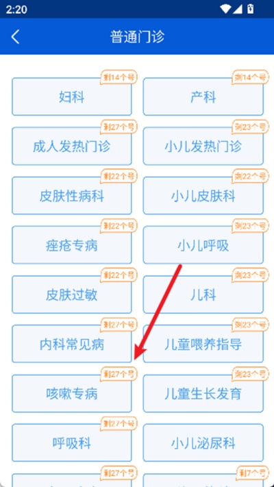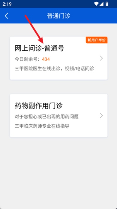 2、在普通门诊页面中,找到并点击“网上问诊-普通号”选项