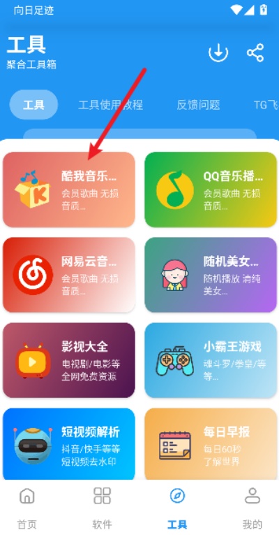 2、在工具页面中找到音乐相关的平台选项,点击进入对应页面,即可查看该音乐平台所整理的内容资源。