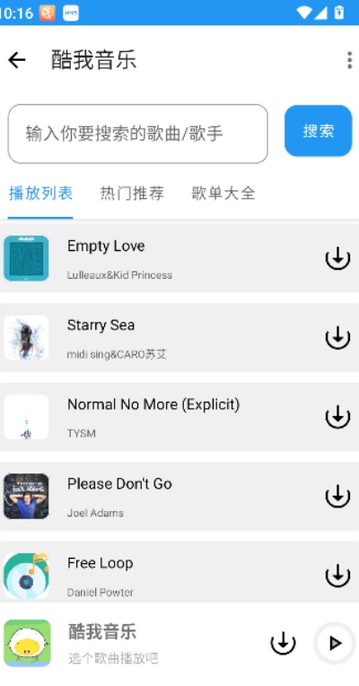 4、打开歌单详情页面后,页面中会展示大量音乐列表内容,可以进行浏览与收听。