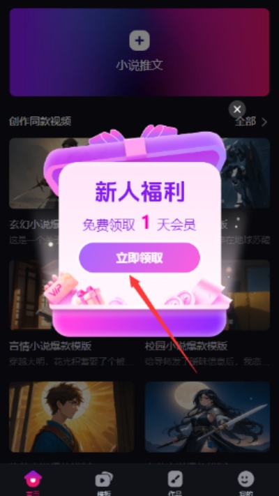 2、第一次进入平台时,可在界面提示中领取一天体验会员资格,完成领取后即可解锁部分功能进行体验。