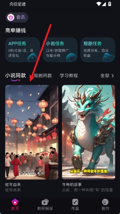 4、阅读页面会出现相关文字提示,根据提示点击“创建同款”按钮,即可生成与当前小说内容相对应的创作内容。
